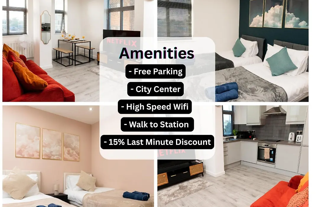 Finden Sie heraus, was andere Gäste über Stylish 2 Bed 2 Bath Apartment - Sleeps 5 - 3 Mins To St Margarets Station & Highcross - Free Parking sagen!