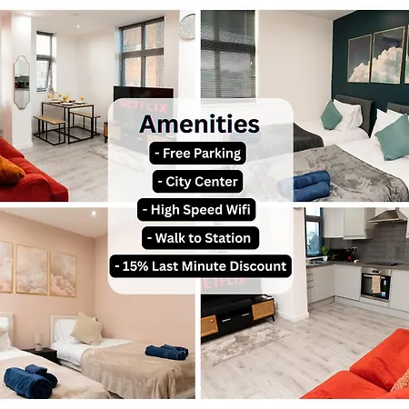 Situé à moins de 6 minutes à pied de Furqan, Stylish 2 Bed 2 Bath Apartment - Sleeps 5 - 3 Mins To St Margarets Station & Highcross - Free Parking Leicester spacieux propose à ses hôtes un accès facile à diverses attractions touristiques à proximité. Vous pourrez explorer la région grâce des bicyclettes.